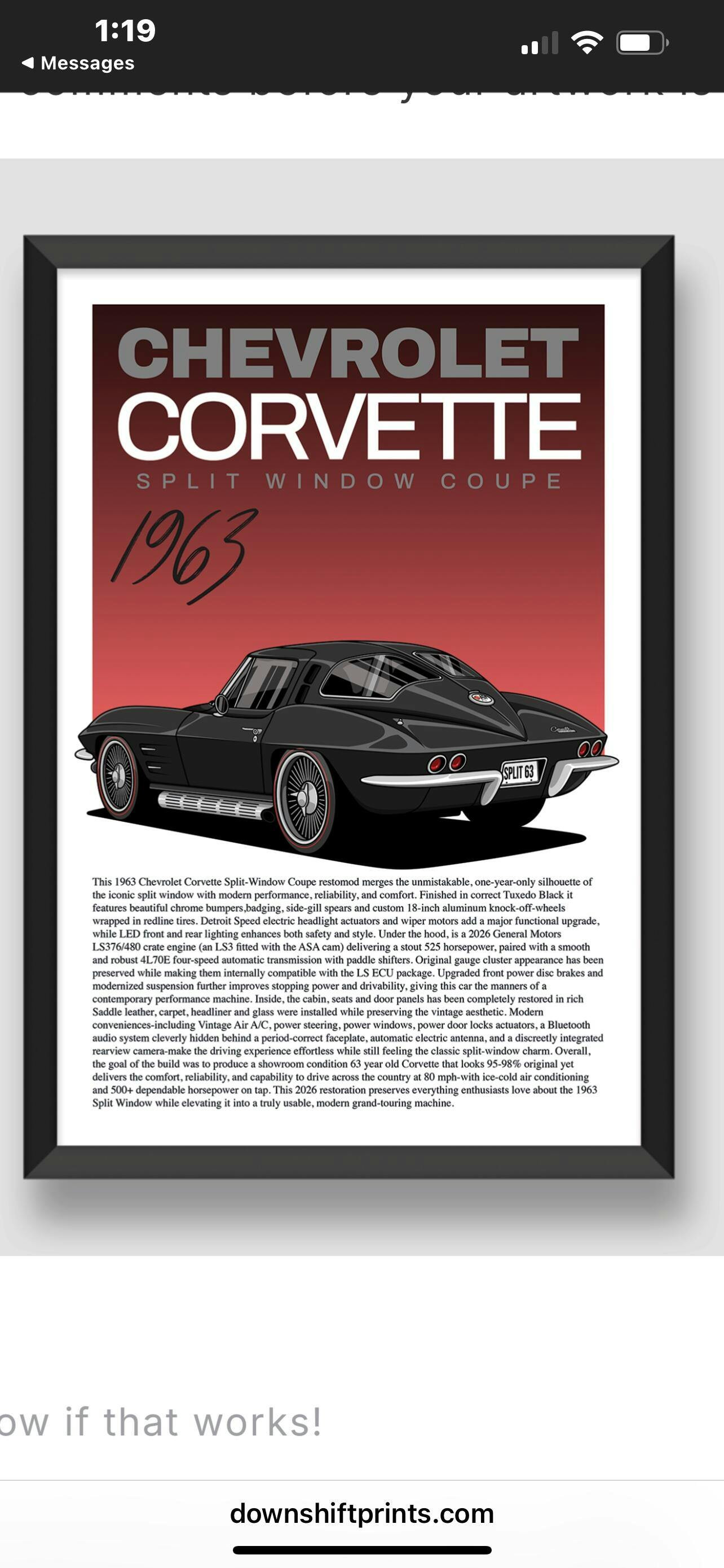 This was my second poster order from Downshift Prints. In both instances, my requested changes were made correctly without hesitation or blow back. Downshift Prints can be counted on to produce an excellent keepsake poster of your vehicle that you will take pride in displaying, especially at car shows. Thank you for a job well done.