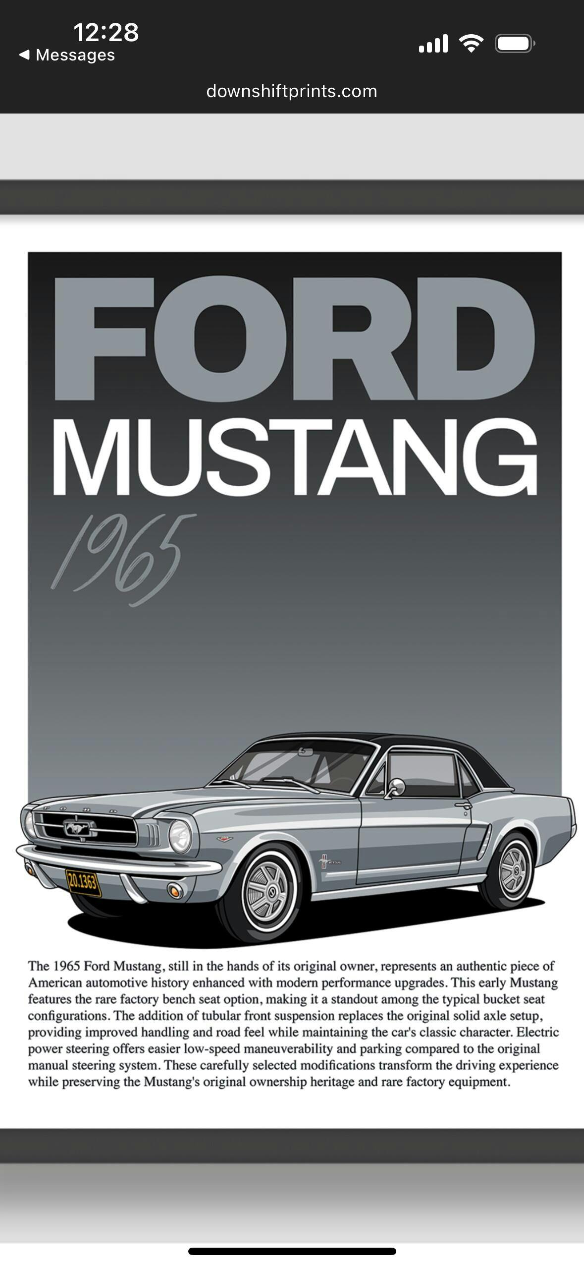 I was delighted to have received a poster of my 1968 Mustang for Christmas from my son. Absolutely awesome work, and love having the digital version as my phone wallpaper as well! Definitely recommend!